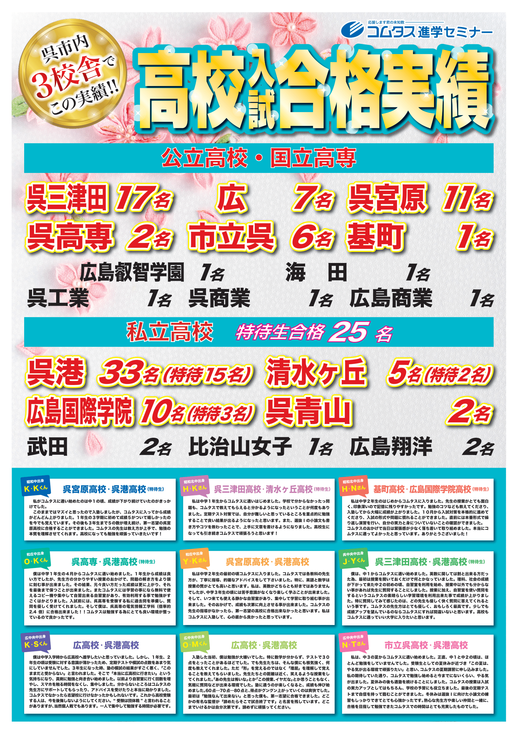 広島県呉市の中学・高校・大学受験で実績をを上げる学習塾「コムタス進学セミナー」