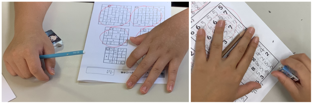 通常、京大東田式パズルは「自分との競争」が主な目的なので、誰かと結果を競うことはしません。難しい問題を解けた子を、他の子が「すごい」と拍手で讃えることはありますが(笑)。